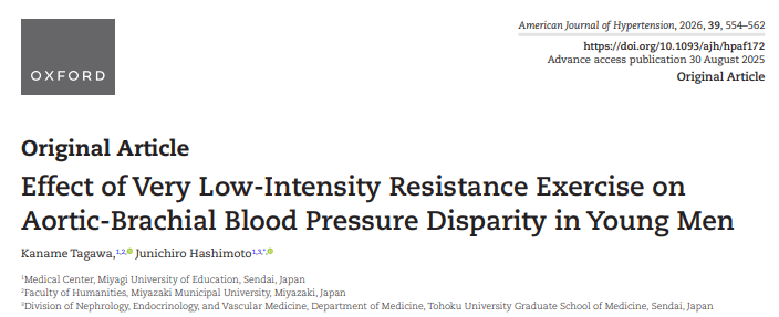 肘部屈肌对于日常活动(如提重物、穿衣和伸手)至关重要。上肢阻力训练已被证明比下肢阻力训练更能增加主动脉压力。13 这引发了对其血流动力学负荷的担忧。因此,本研究考察了低强度上肢阻力训练如何影响主动脉压力。因此,参与者使用橡胶型哑铃(最大重量 30 千克)和砝码板(RUBK-0.5)进行双侧肱二头肌弯举,进行 3 组直至失败,分别在 10% 或 40% 的 1RM 下进行,每组之间休息 2 分钟。每个动作有 0.75 秒的起升和下降阶段,这是基于初步数据得出的,表明超过 1 秒的阶段可以使 10% 1RM 的运动持续 1 小时。工作量是根据计算得出的。公式:强度(千克)×重复次数×1.5秒(下降 0.75 秒 + 提起 0.75 秒)