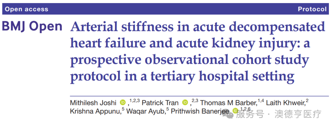 研究热点 | 急性失代偿性心力衰竭及急性肾损伤患者动脉僵硬度的研究:在三级医院环境中的一项前瞻性观察性队列研究方案